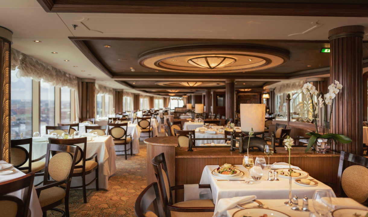 From its gourmet dining rooms to its spacious cabins, you’ll enjoy high-class surroundings, enriching on-board activities and a truly regal way to travel.